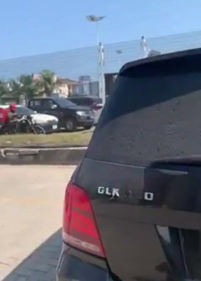 The video starts with a close-up of the rear of a black Mercedes-Benz with "4MATIC" branding, parked in a lot