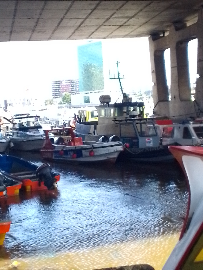 - "The image displays a bustling waterway scene beneath a concrete bridge, specifically identified as the Falomo Bridge in Falomo, Lagos, Nigeria, due to the prominent Heritage Bank Tower skyscraper visible in the background" by FM-NqVRd2, licensed under CC BY 4.0