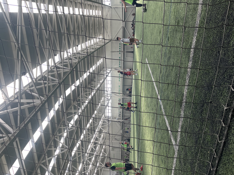 - "An indoor artificial turf football pitch is depicted through a black mesh netting, which occupies the immediate foreground and extends across the frame" by FM-TCIv02, licensed under CC BY 4.0