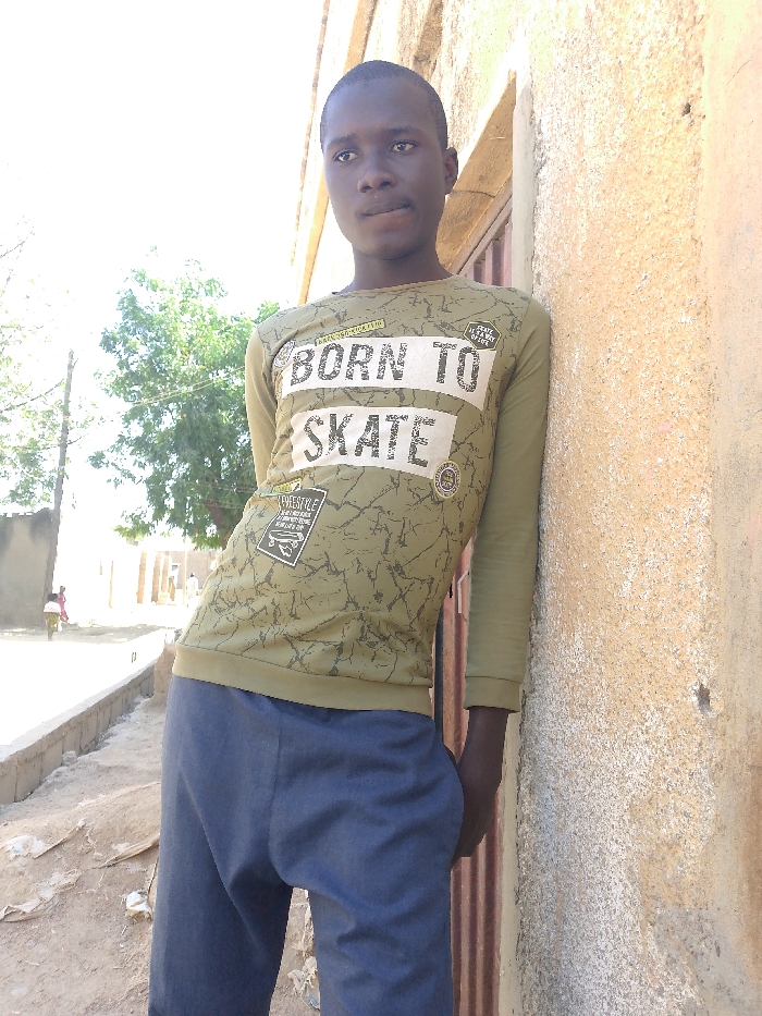 A vertical photograph captures a young male individual standing outdoors in Hotoro North, Nigeria