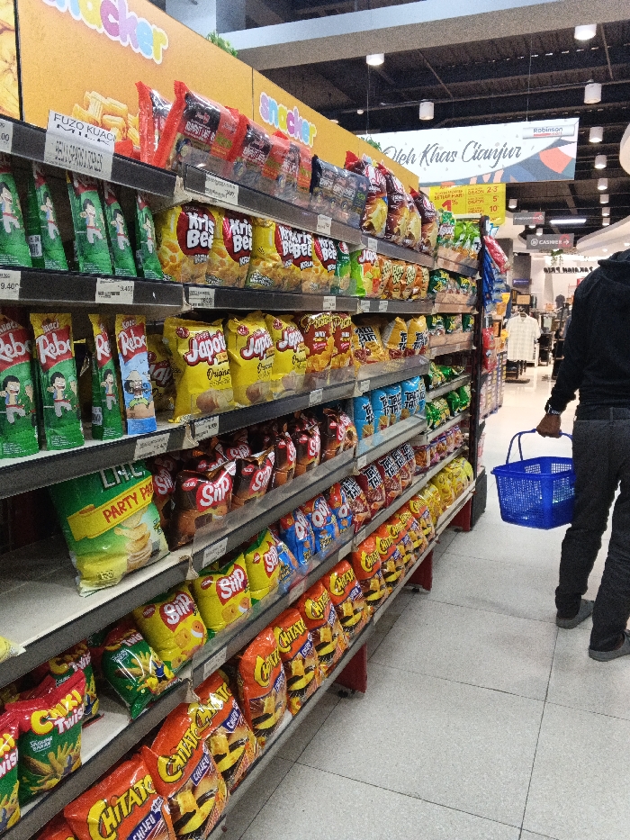 - "A well-stocked grocery aisle displays various snack items, including potato chips from brands like "Kris Bee," "Japota," "Chitato," and "Siip" by FM-4dWA33, licensed under CC BY 4.0