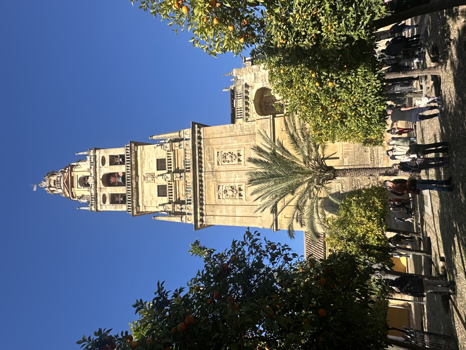 - "The image captures the bell tower of the Mezquita-Cathedral in Córdoba, Spain, viewed from the Patio de los Naranjos (Courtyard of the Orange Trees) on a clear, sunny day" by FM-IkaP23, licensed under CC BY 4.0