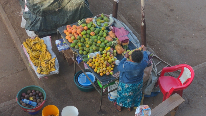 - "An outdoor fruit stand displays mangoes, oranges, pineapples, avocados, and bananas" by FM-QrecA3, licensed under CC BY 4.0