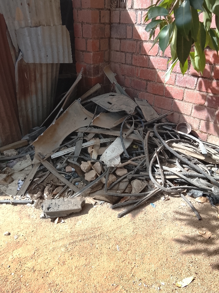 - "An outdoor scene in Jos, Nigeria, depicts a cluttered pile of mixed refuse situated at the juncture of a red-brick wall and a structure composed of corrugated metal sheets" by FM-NxOdI3, licensed under CC BY 4.0