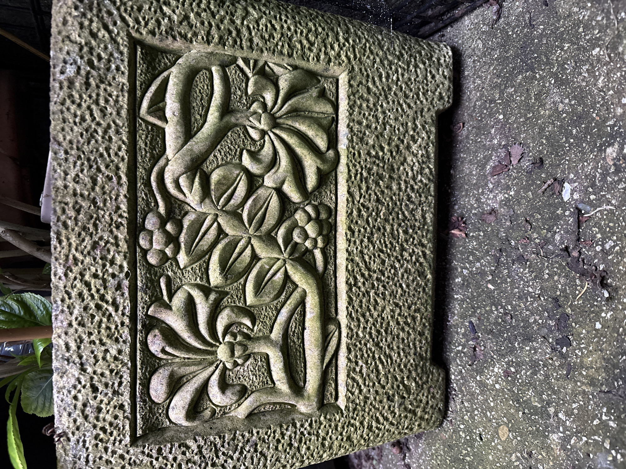 - "A rectangular, weathered stone planter is depicted resting on a mottled grey, granular concrete or asphalt surface in Oswestry, United Kingdom" by FM-RPcgE2, licensed under CC BY 4.0