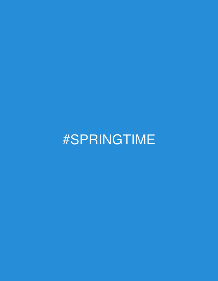 This image is an abstract graphic, contextually associated with Ciudad de la Costa, Uruguay, although it depicts no specific physical location or environment within the city. The entire frame is filled with a solid, uniform blue color. Centered horizontally and positioned slightly above the vertical midpoint, the white text '#SPRINGTIME' is displayed in an uppercase, sans-serif font. No individuals, objects, environmental details, actions, or interactions are visually represented within the image.