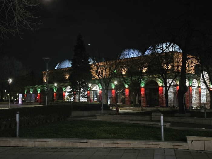 - "The image depicts a nighttime scene in Yambol, Bulgaria, centered on the historic Eski Mosque/Bezisten" by FM-IYQQn1, licensed under CC BY 4.0