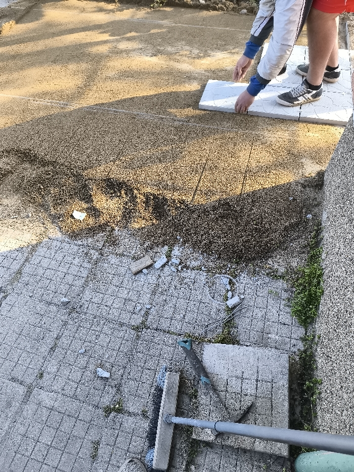 The image displays an outdoor landscaping or construction scene in the city of Unknown, Unknown