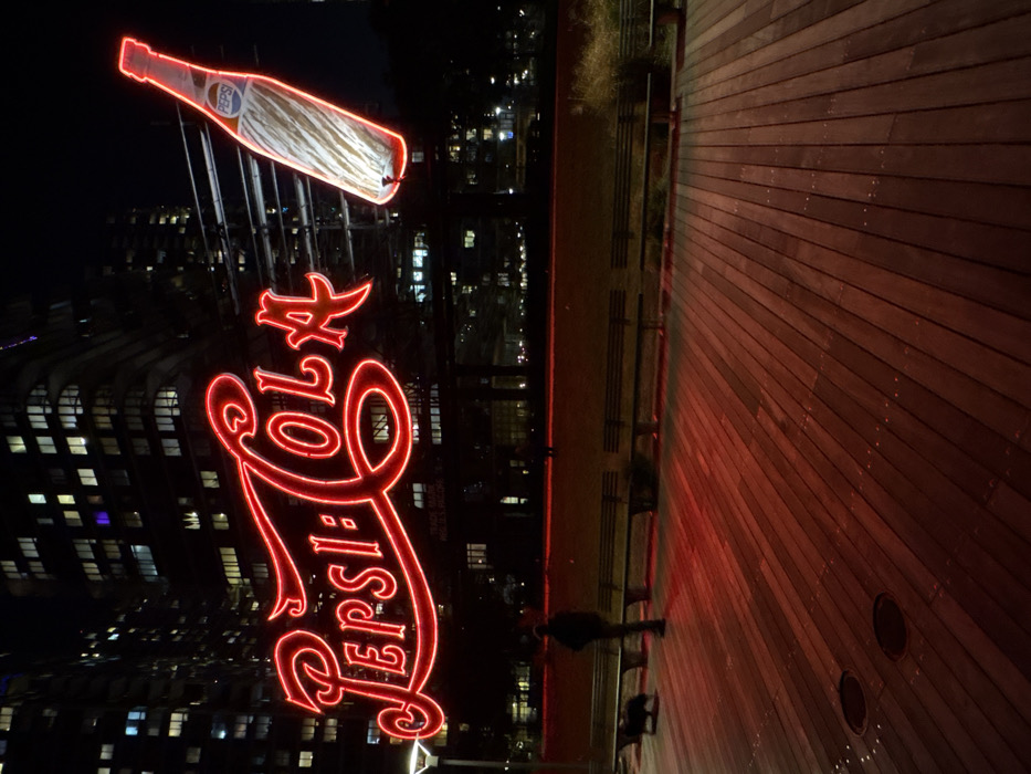 - "A neon Pepsi-Cola sign glows red against a night sky with building lights" by FM-1fpML2, licensed under CC BY 4.0