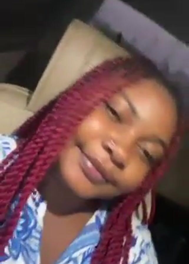 A young woman with reddish-purple braided hair is in a car