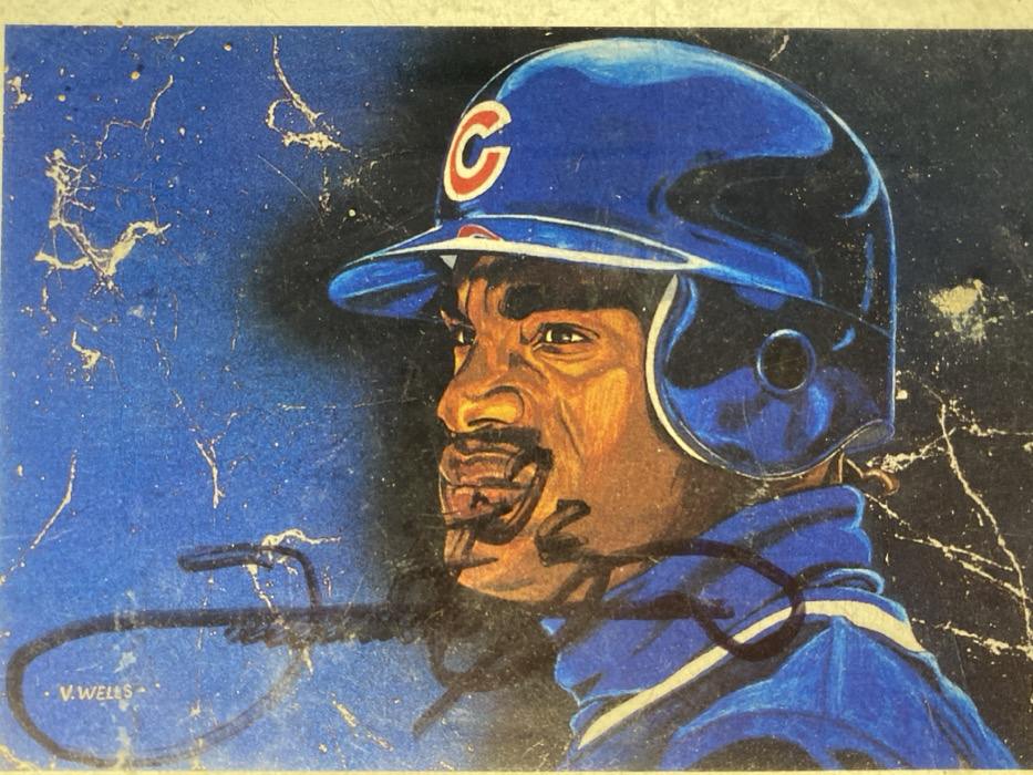 - "A vintage baseball card features a drawing of a player wearing a Chicago Cubs helmet" by FM-GA5i52, licensed under CC BY 4.0