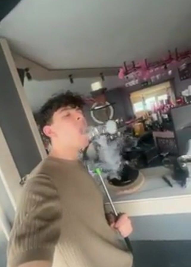- "A young man is shown taking a drag from a hookah and blowing smoke rings towards the ceiling of what looks like a bar" by FM-ZrwqU2, licensed under CC BY 4.0