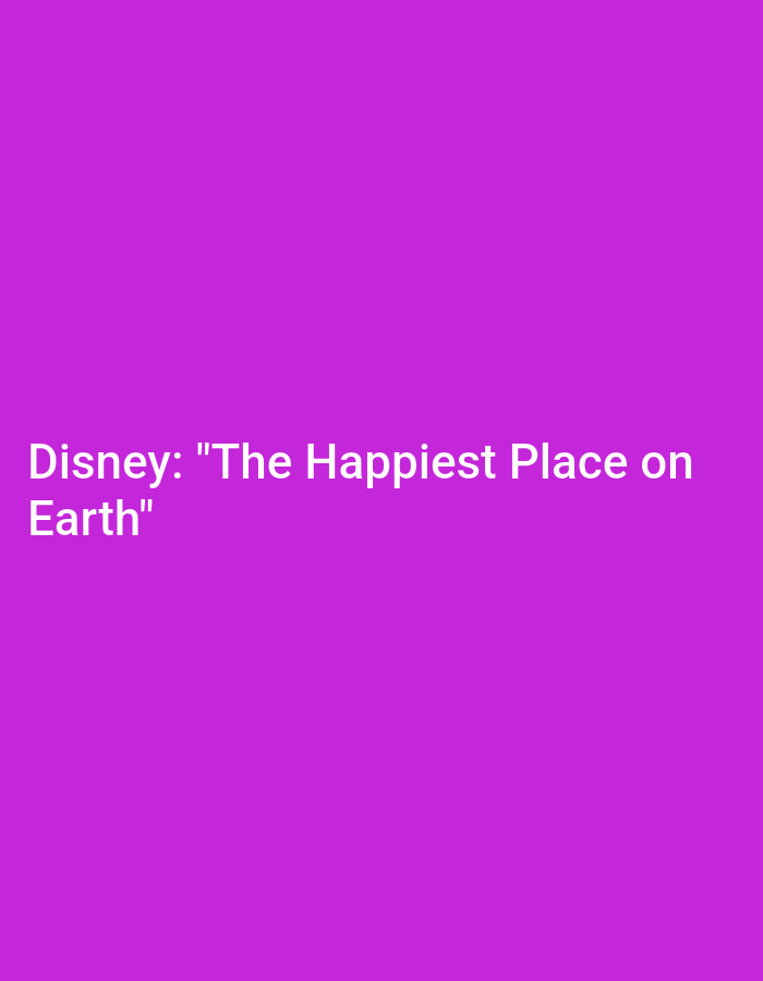 The image depicts white text centered against a solid purple background. The text reads: "Disney: "The Happiest Place on Earth"". No individuals, physical objects, actions, or interactions are present. The environment is a flat, uniform digital color. There is no visual information within the image to determine a specific geographic location, including Mansehra, Pakistan.