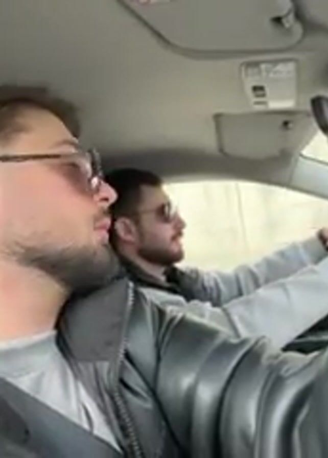 Two men are in a car