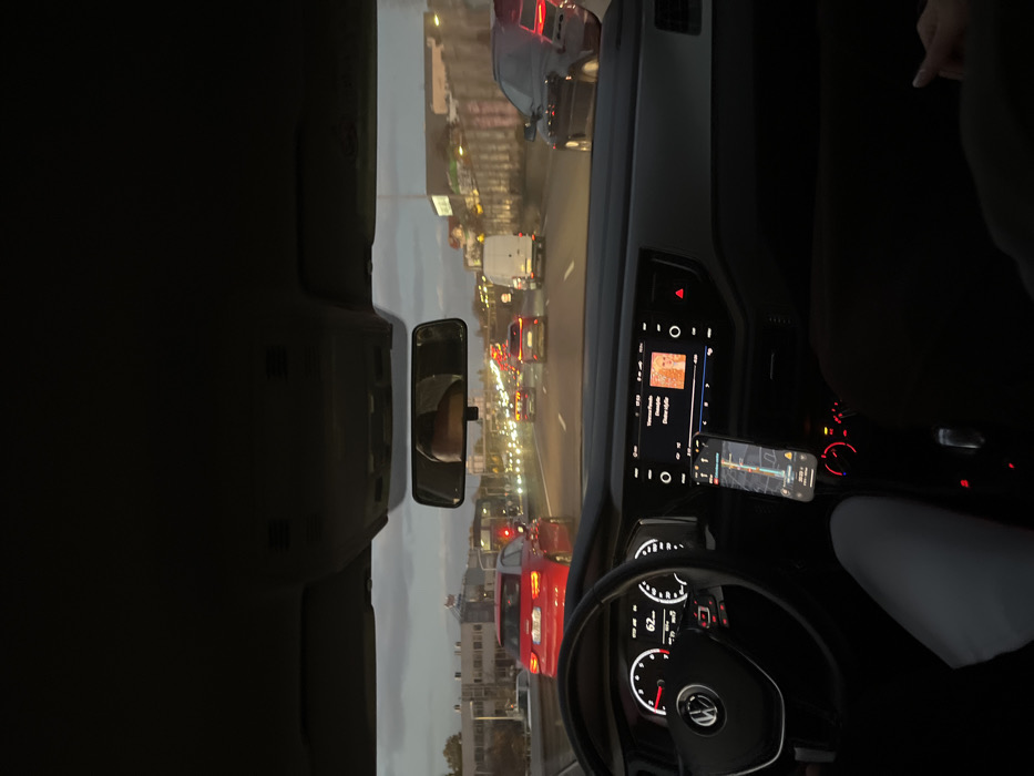 - "The image captures the interior of a vehicle, specifically a Volkswagen, from a low-angle perspective looking forward through the windshield onto a multi-lane highway in Nanterre, France" by FM-2aYl13, licensed under CC BY 4.0