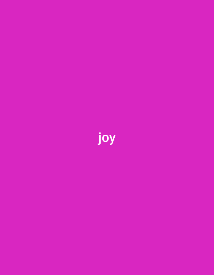 A solid magenta background dominates the image. Centered horizontally and vertically is the word "joy" in a simple, sans-serif typeface. The text is white, creating contrast against the vibrant background. The overall composition is minimalistic and text-focused.