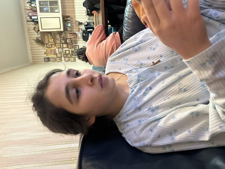 - "A girl with dark hair rests her head on a dark blue surface, possibly a couch or chair" by FM-Cm4dC2, licensed under CC BY 4.0