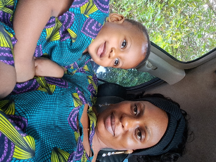 An adult female and an infant/toddler are seated inside a passenger vehicle in the City of Unknown, Unknown