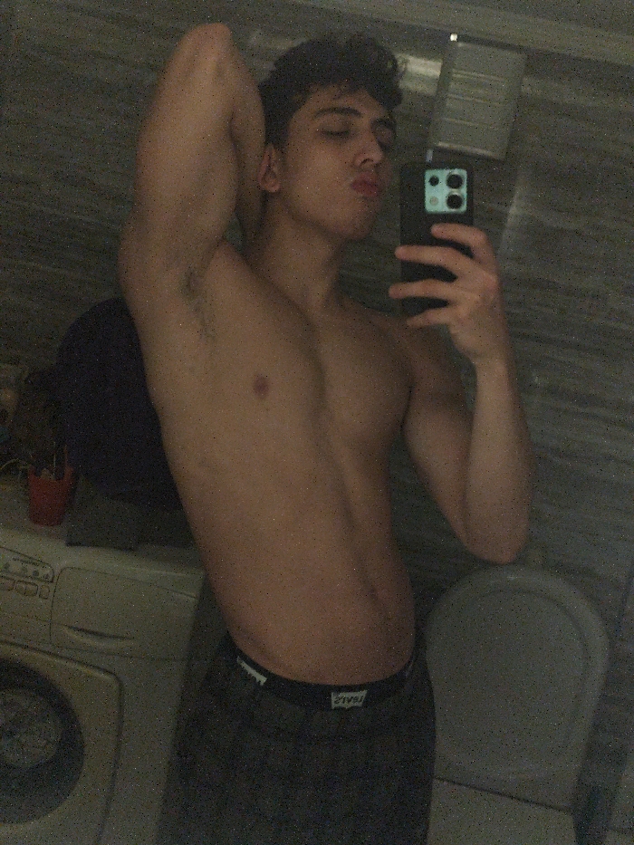 - "A shirtless young man poses in a bathroom mirror selfie" by FM-BskwX2, licensed under CC BY 4.0