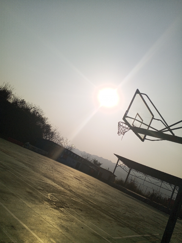 - "A wide-angle, slightly upward-tilted outdoor photograph depicts a worn basketball court under a bright, hazy sky in Jiangjin, China" by FM-oJvmO2, licensed under CC BY 4.0