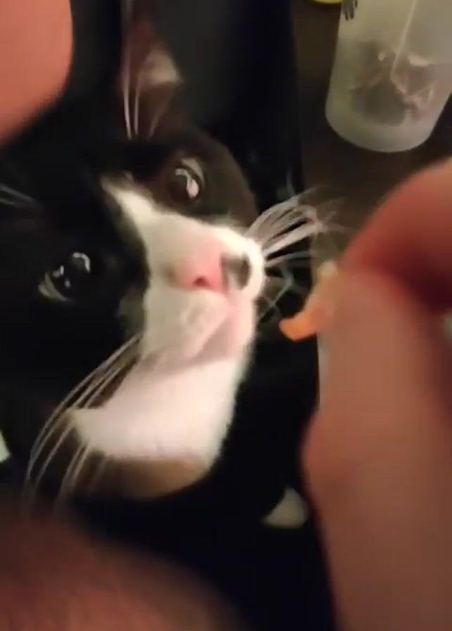 - "A close-up video shows a black and white cat being hand-fed a treat" by FM-eMutn2, licensed under CC BY 4.0