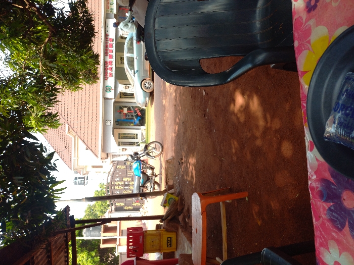 The scene depicts a daytime street view in Oturkpo, Nigeria, from a shaded, outdoor perspective