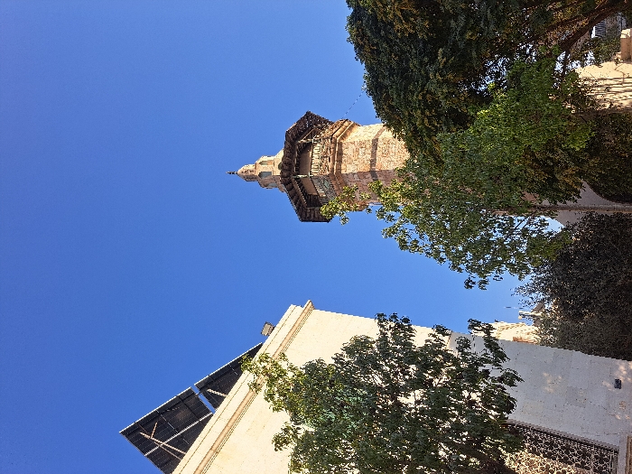 - "The image presents an exterior view of the Umayyad Mosque in Damascus, Syria, under a clear, deep blue sky" by FM-F5kpk1, licensed under CC BY 4.0