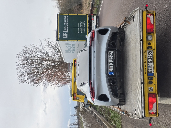 - "A silver Lotus Emira sports car is depicted secured on the flatbed of a yellow tow truck" by FM-5wmrT2, licensed under CC BY 4.0