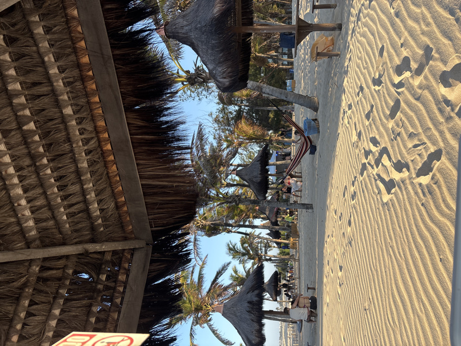 - "The image depicts a sandy beach scene in Caucaia, Brazil, viewed from beneath a large, dark-brown thatched roof structure" by FM-vqpAr1, licensed under CC BY 4.0