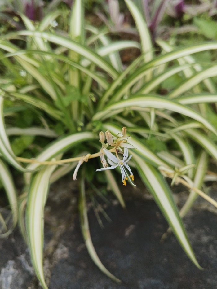 - "The image displays a close-up of a variegated spider plant (Chlorophytum comosum) in bloom, located in the city of Pô Kô, Vietnam" by FM-paRGh1, licensed under CC BY 4.0