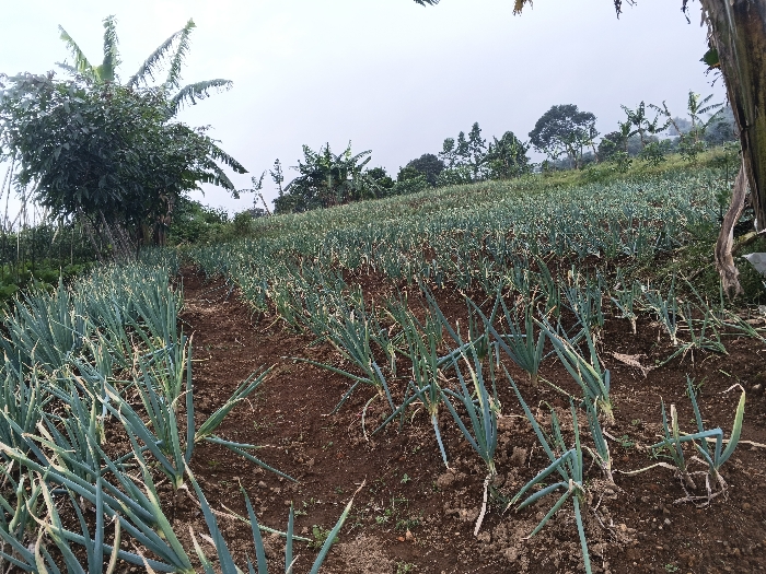 - "The image depicts an agricultural field on a gentle slope, cultivated primarily with rows of green scallions or similar allium species" by FM-2nqBt2, licensed under CC BY 4.0