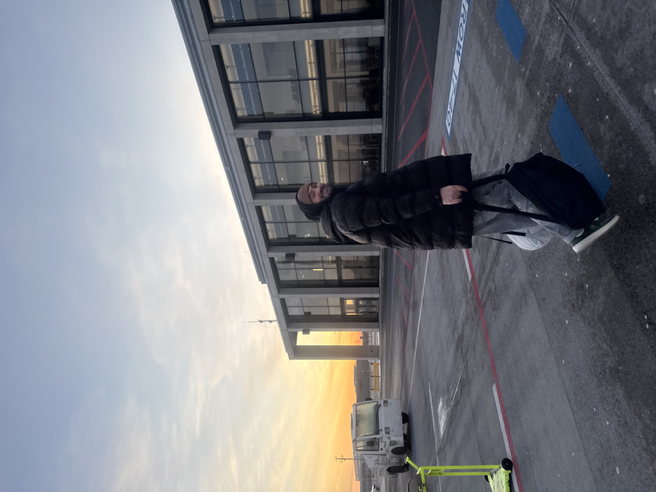 - "A man in a black puffer jacket stands outdoors with a suitcase at an airport" by FM-FvWaA3, licensed under CC BY 4.0