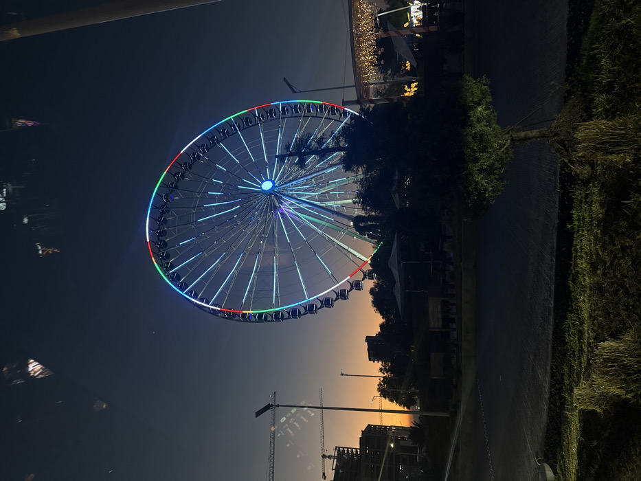 - "A Ferris wheel with colorful lights is the focal point, illuminated against a twilight sky" by FM-8pND62, licensed under CC BY 4.0