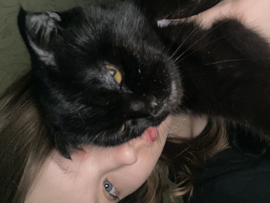 - "A black cat with golden eyes rests its head on a person's face" by FM-7yvy52, licensed under CC BY 4.0