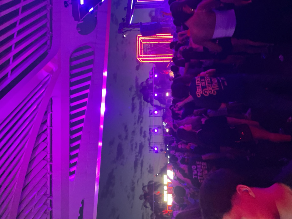 - "A vibrant outdoor concert scene unfolds at dusk, featuring a sizable crowd gathering before a stage with prominent lighting rigs and a neon-framed structure" by FM-JZ6l23, licensed under CC BY 4.0