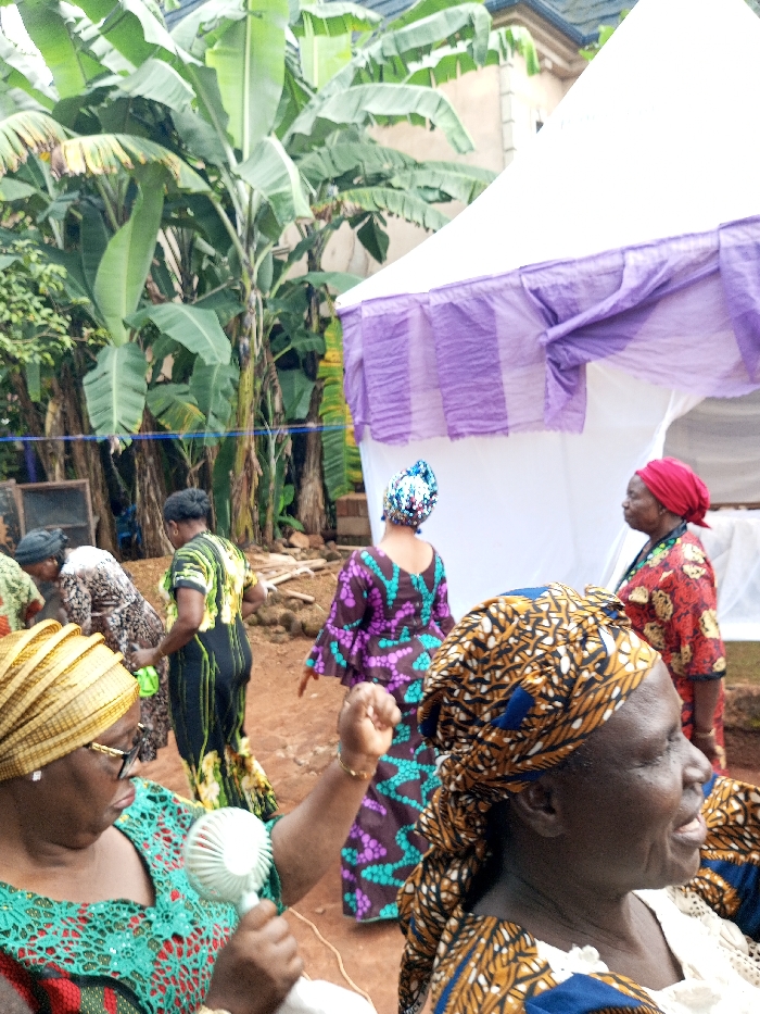 - "The image displays an outdoor gathering in Oko Town, Nigeria, featuring an unpaved reddish-brown earth ground and dense tropical foliage, predominantly large banana trees, in the background" by FM-cHL5J2, licensed under CC BY 4.0