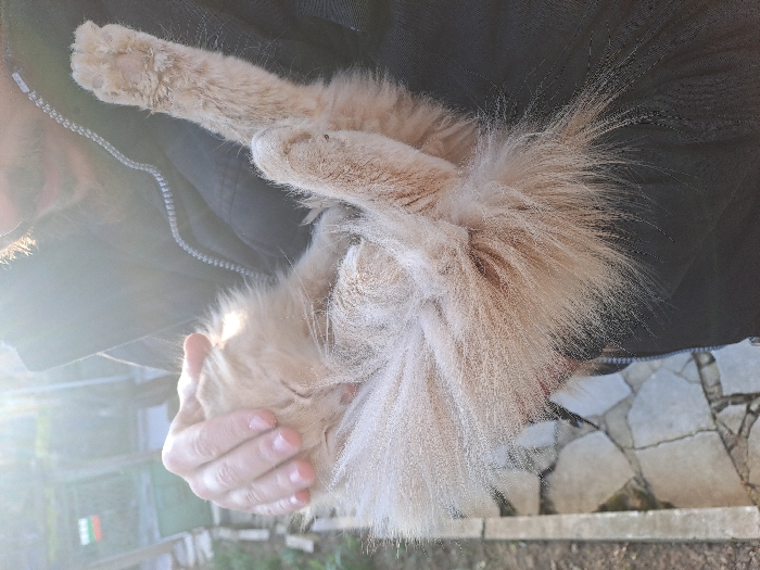 - "The image depicts an outdoor scene in Spanchevtsi, Bulgaria, featuring a male individual holding an orange-ginger long-haired cat" by FM-K4MkE3, licensed under CC BY 4.0
