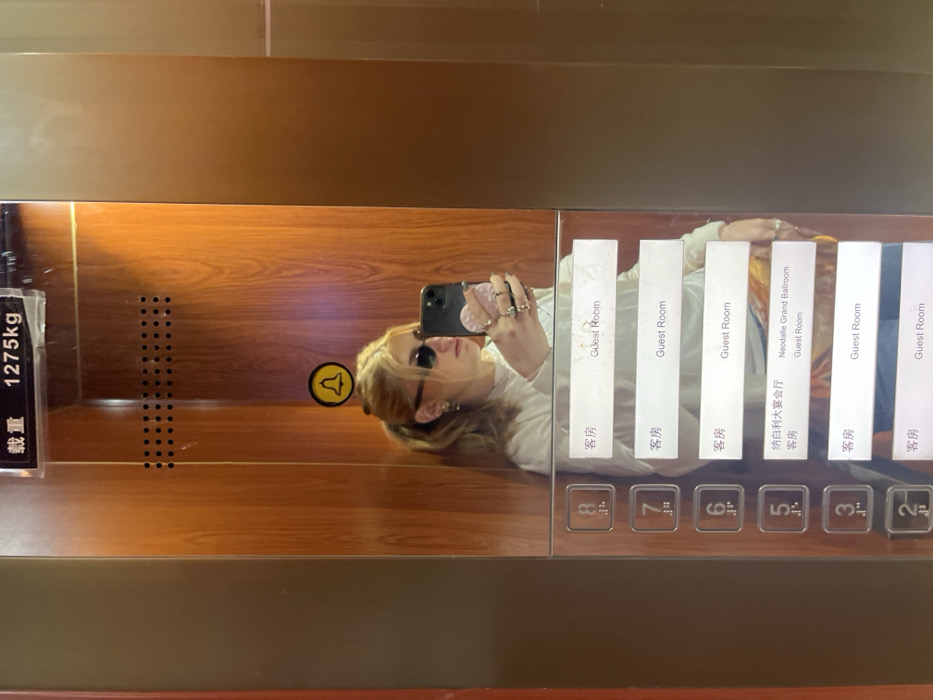 - "The image depicts a mirror selfie taken inside an elevator, likely within the Neodalie Hotel in Wulingyuan, China" by FM-VYYYD2, licensed under CC BY 4.0