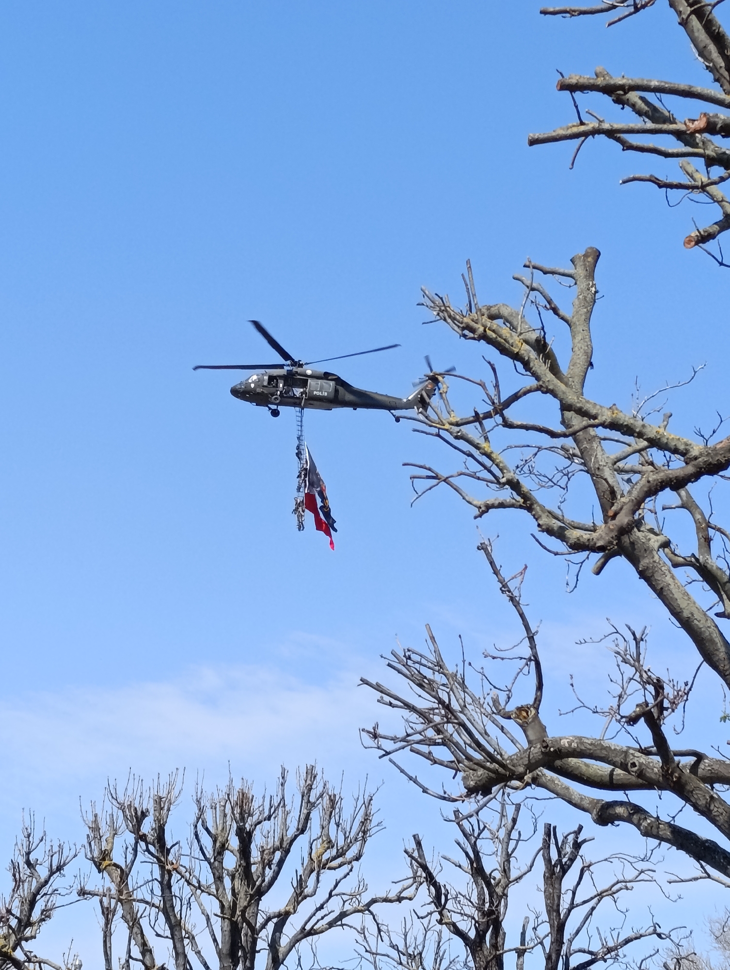 - "dark-colored helicopter with the word "POLIS" on its side hovering in the sky" by FM-P9qXD3, licensed under CC BY 4.0