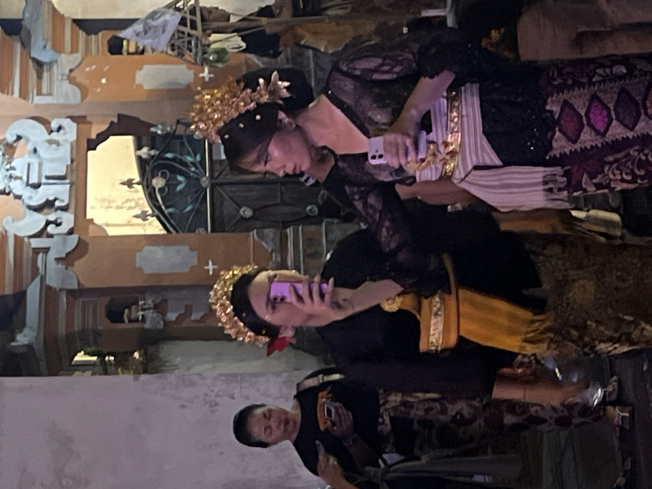 - "The scene depicts an outdoor gathering at night in Munggu, Indonesia, set against the backdrop of an ornate traditional Balinese building facade with orange/peach walls and lighter decorative carvings, featuring a dark metal gate partially visible in the background" by FM-xgQP92, licensed under CC BY 4.0