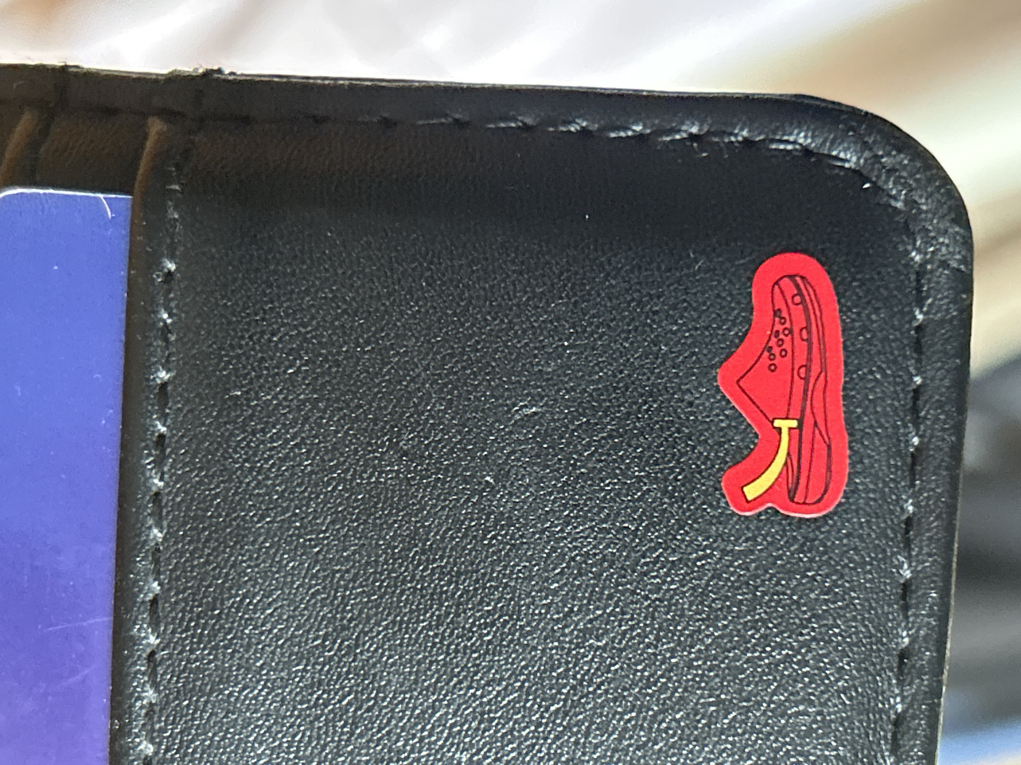 - "A close-up image shows a black leather wallet with a red sticker of a kidney with yellow detail on its surface" by FM-1JHUz1, licensed under CC BY 4.0