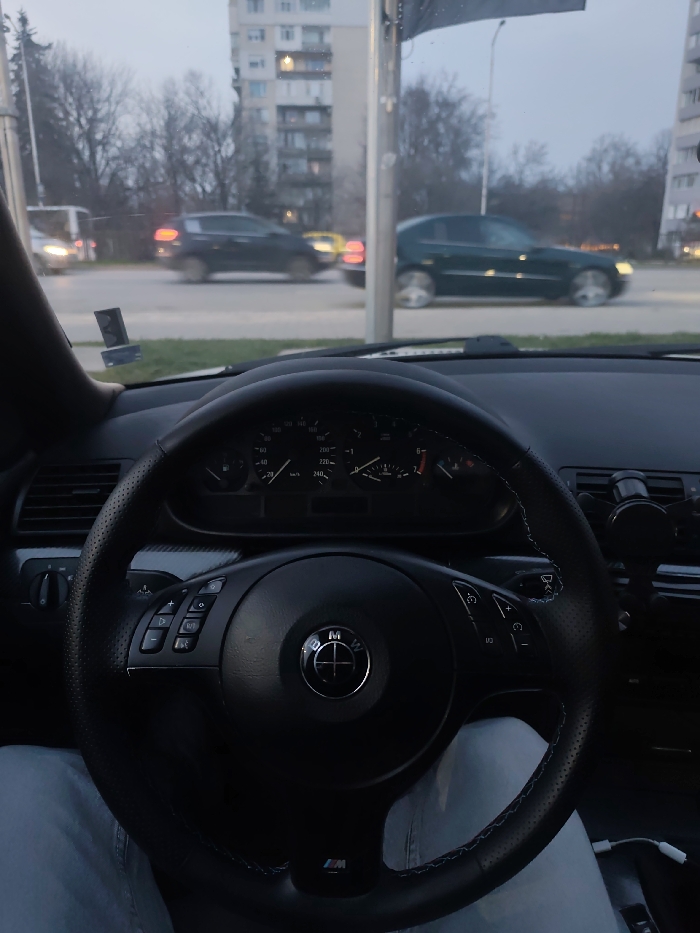 - "The image presents a first-person view from the interior of a vehicle, specifically a BMW indicated by the steering wheel's logo and "M" badge, looking out through the windshield onto an urban street in Plovdiv, Bulgaria" by FM-pU3Cf2, licensed under CC BY 4.0