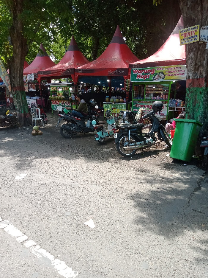 - "The image displays an outdoor commercial area, specifically a series of street food stalls, located in Nganjuk, Indonesia" by FM-ZmuuT2, licensed under CC BY 4.0