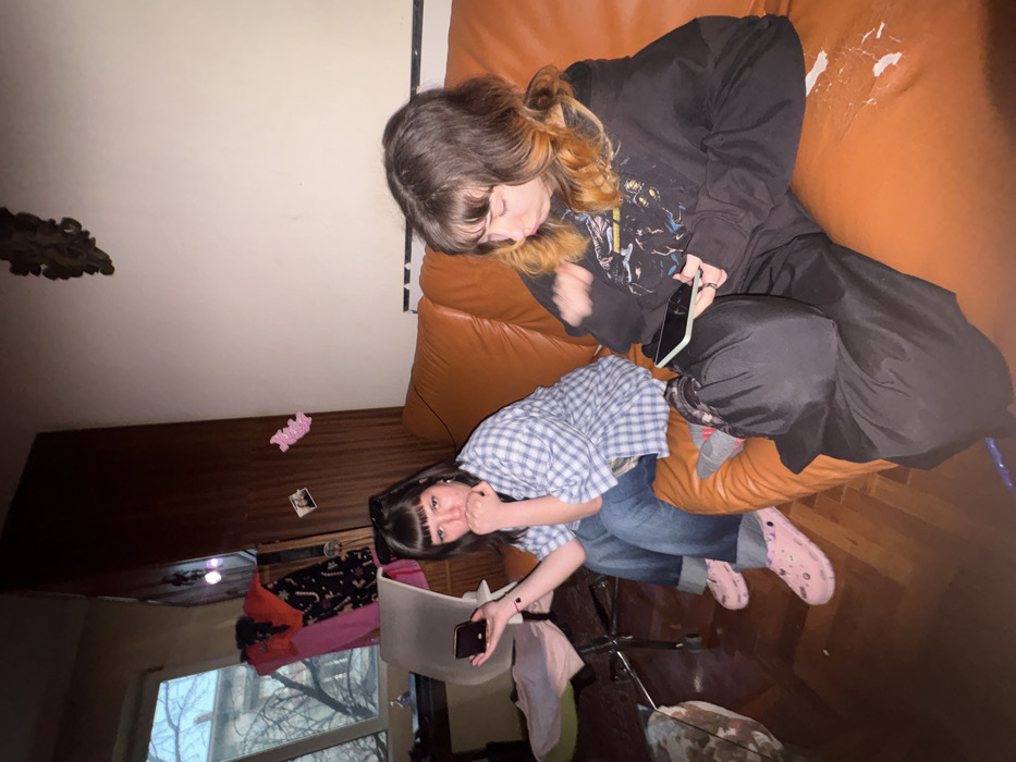An indoor scene within a domestic residence in Stara Zagora, Bulgaria, depicts two female individuals