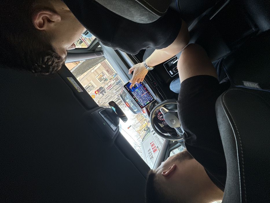 - "The image depicts the interior of a vehicle, looking forward from a rear seat, at an urban intersection in Stara Zagora, Bulgaria" by FM-RkvPy1, licensed under CC BY 4.0