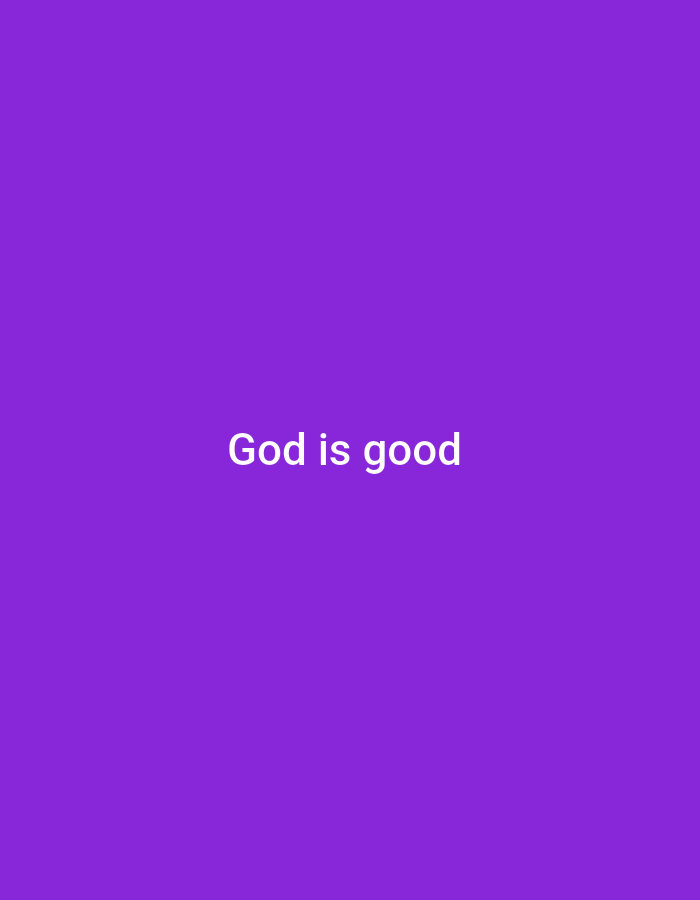 - "The image displays the text "God is good" centered on a solid purple background" by FM-i0a4E2, licensed under CC BY 4.0