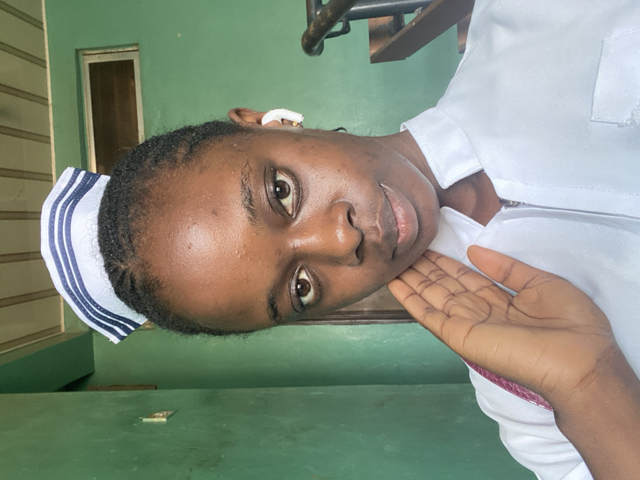 The image captures a close-up, self-portrait style photograph of a young Black female in an indoor setting within Kakuri Gwari, Nigeria