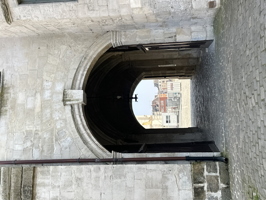 - "The image displays a straight-on view through a stone arched passageway in Beauvais, France, leading to an urban square" by FM-vN6QQ2, licensed under CC BY 4.0
