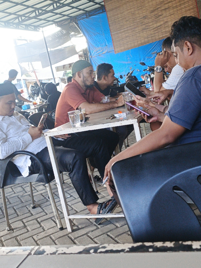 - "The image depicts an outdoor or semi-outdoor gathering of six adult males at a casual establishment in Lhokseumawe, Indonesia, during daylight hours" by FM-UeA623, licensed under CC BY 4.0