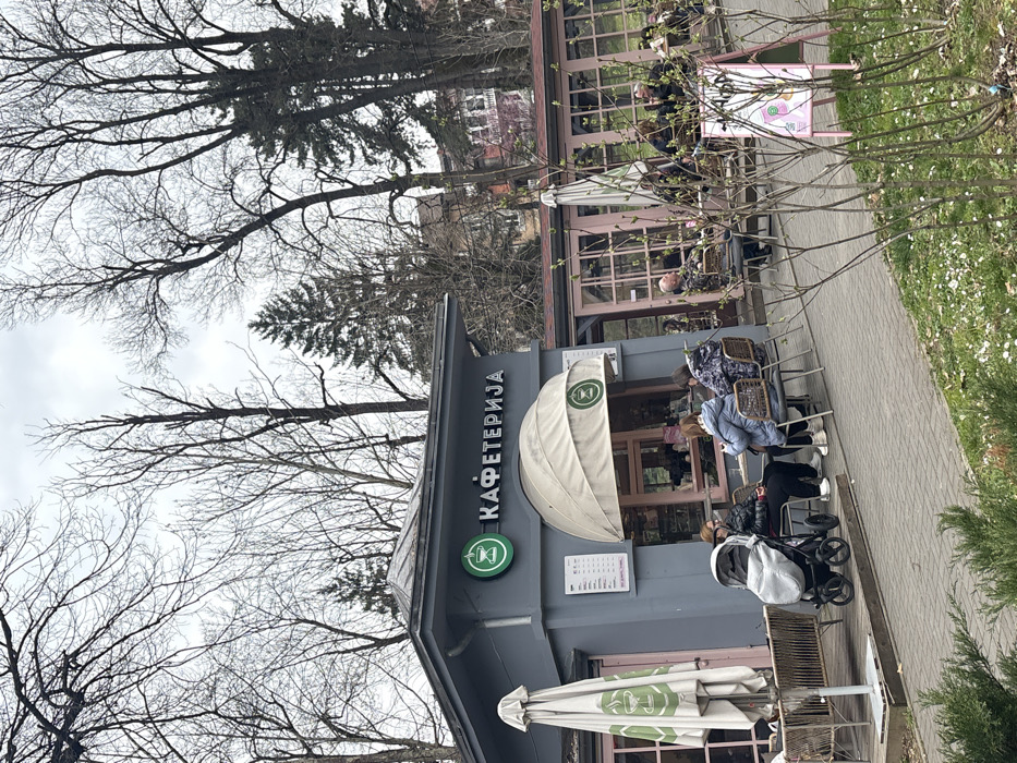 - "An outdoor cafe, identified as "КАФЕТЕРИЈА" (Kafeterija) by its signage, is depicted in what appears to be a park or pedestrian area within Vrnjacka Banja Municipality, Serbia" by FM-sZqdx1, licensed under CC BY 4.0